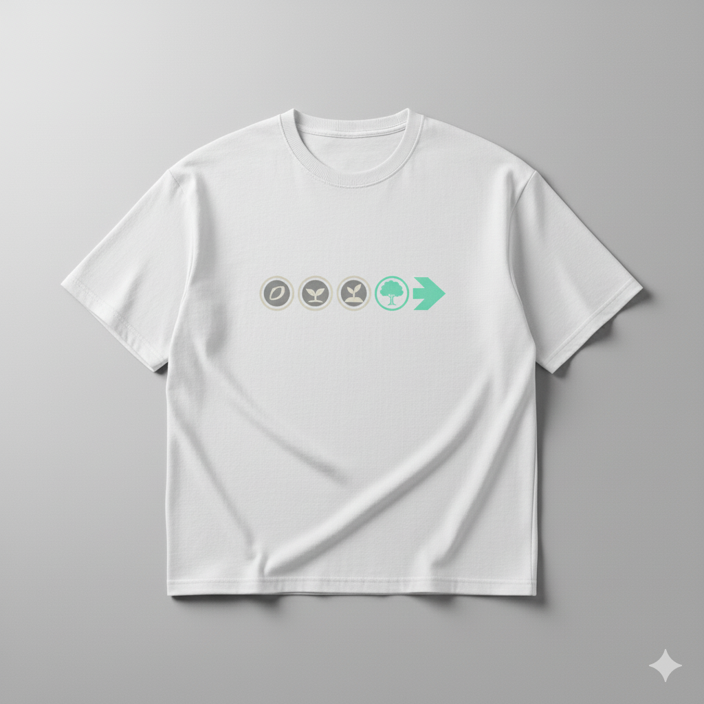 Grow Daily – Seed to Tree Minimal Graphic T-Shirt | White Premium Cotton | Motivational Streetwear